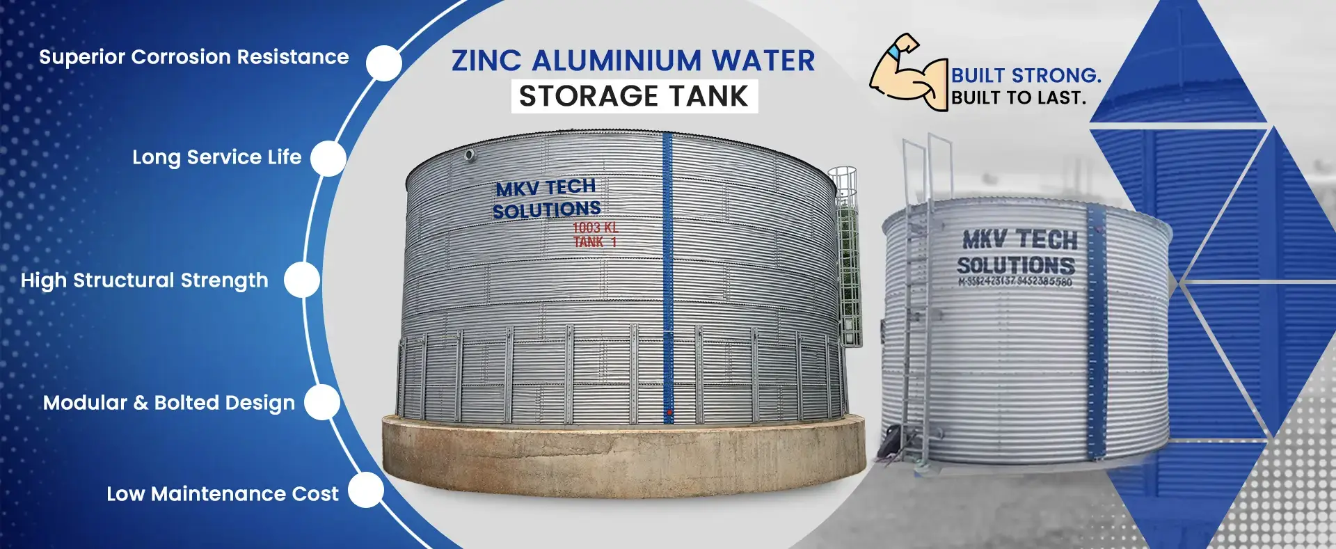 +25 Year Of Experience With our undivided commitment to quality and innovation, Zinc Aluminium Water Storage Tank Manufacturers in Ghaziabad, India, storage tanks to ensure that your valuable resources are safely stored, protected, and ready for use whenever you need them. Welcome to MKV Tech Solutions, your one-stop destination for premium storage solutions! We specialize in providing cutting-edge storage tanks that meet the diverse needs of industries worldwide. Your trusted source for innovative storage solutions. We specialize in providing top-of-the-line storage tanks that meet the diverse needs of industries worldwide.